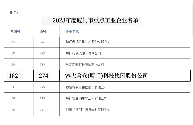 容大科技入選2023年度廈門市重點(diǎn)工業(yè)企業(yè)