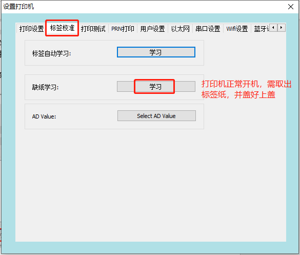 不同的標簽的底紙的AD值與紙張AD值壓差不一致,所以替換不同規格的標簽紙時,需要進行標簽學習,標簽學習分為手動標簽學習和工具標簽學習兩種(效果一樣);
