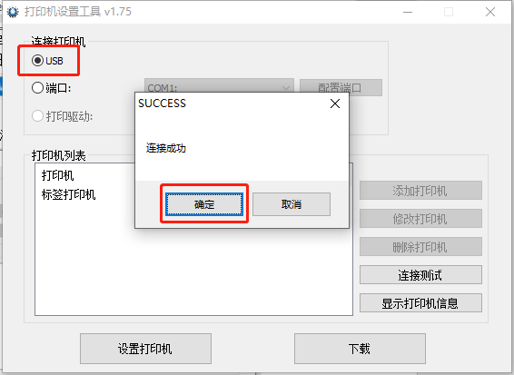 ② 打開標簽設置工具,點擊連接測試,提示連接成功;