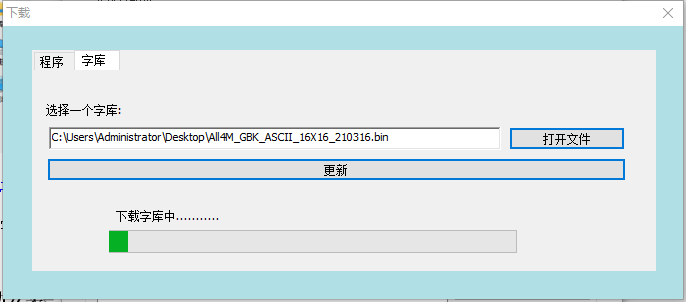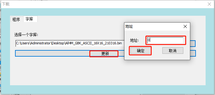 ⑤ 點擊更新,在地址框輸入廠家提供的對應字庫地址數字(標準字庫地址默認為: 0 );