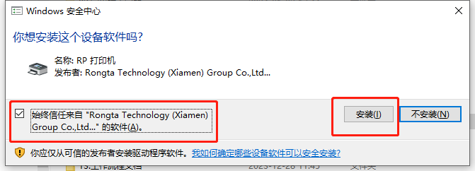 ④ 根據提示選擇勾選信任容大軟件來源,點擊“安裝”;