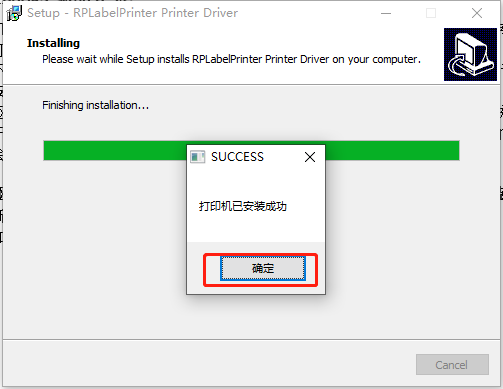 ⑤ 驅動安裝成功后提示“打印機已安裝成功”;