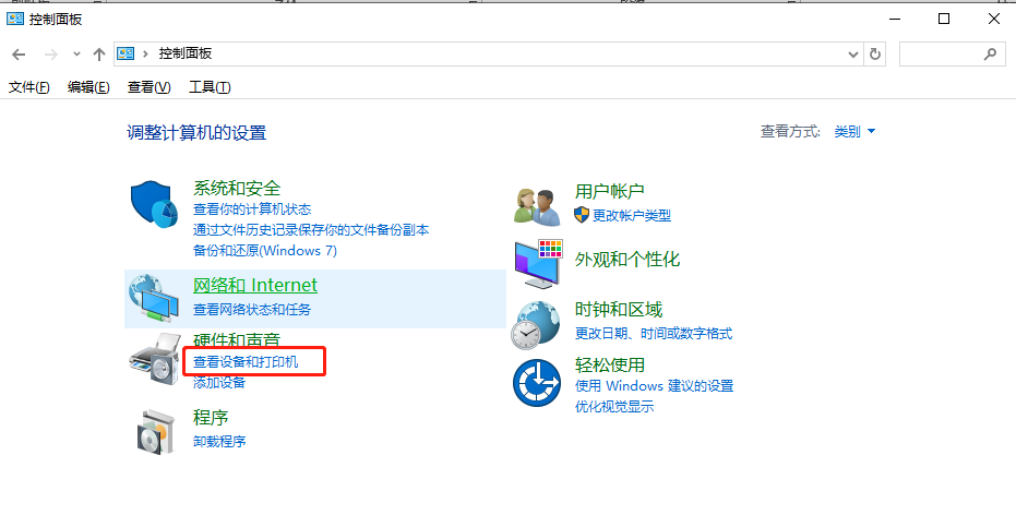 ② 在控制面版界面中選擇并雙擊查看設備和打印機圖標