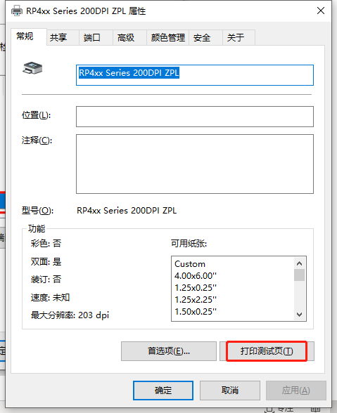 ③ 找到已安裝完成的驅動的圖標,下面以(RP4XX Series200DPI ZPL)驅動為例,右鍵選擇打印機屬性;
