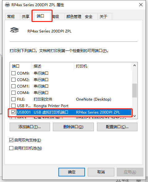 在打開驅動打印機屬性后切換端口,根據實際使用的端口選擇勾選對應的端口;