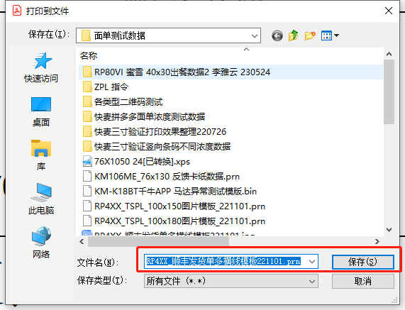② 通過驅動打印正常單據,彈出保存文件框,命名之后保存為prn文件即可;