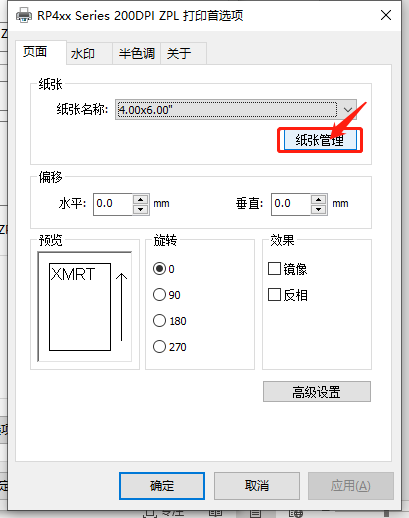 當驅動尺寸大于實際標簽尺寸時,打印內容可能會超出標簽,導致出現跳張的情況,可檢查驅動的尺寸大小設置是否超過實際標簽大小,也可以把驅動紙張大小高度設置小于實際標簽高度1mm進行測試;