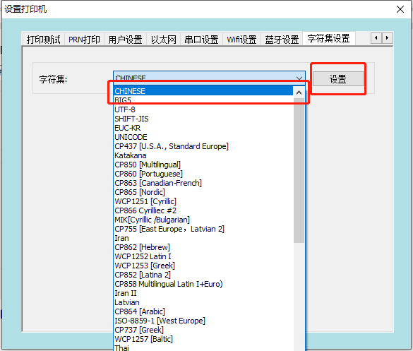 II. 切換到字符集設置界面,字符集下拉選擇CHINESE,點擊“設置”即可;