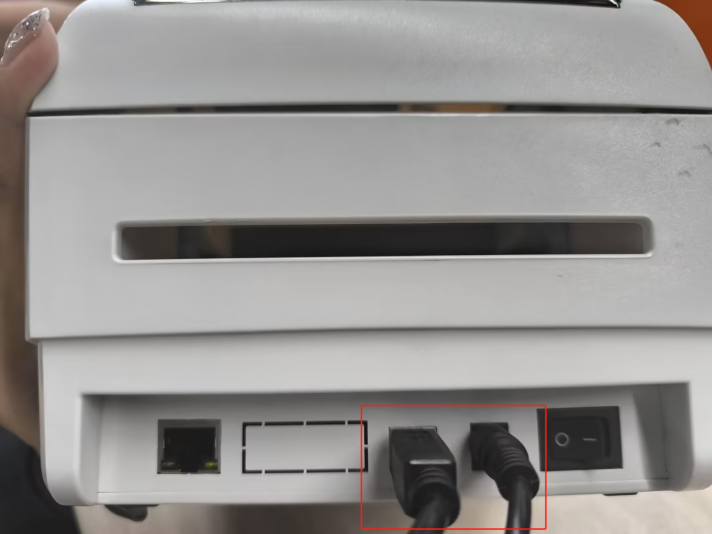 1.給設(shè)備插上電源及USB線并連接到電腦,給打印機安裝紙卷: