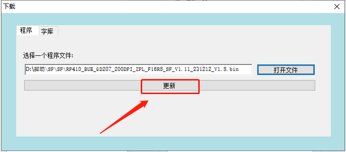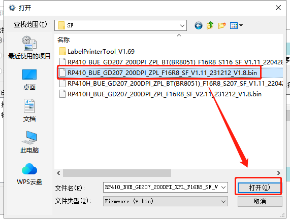 4.4 點擊“下載”,在出現(xiàn)的下載界面中“打開文件”,選擇對應(yīng)程序后綴231212的版本,下圖機器為RP410(可查看機器底標確認型號),則選擇以下文件: