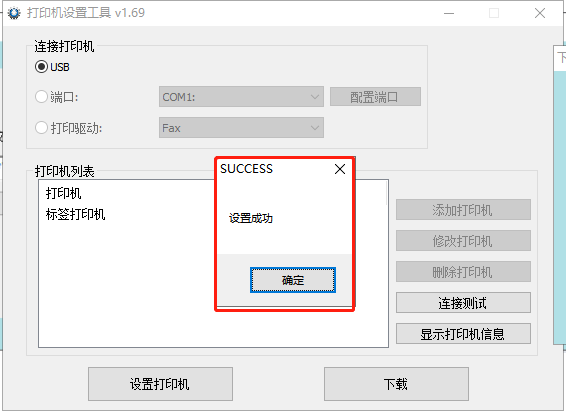 連接失敗則重啟打印機,檢查USB線是否有連接好。