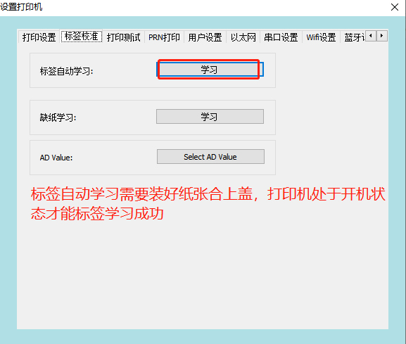 d.缺紙學習完成之后,紙張裝好蓋上蓋再進行一次【標簽學習】。