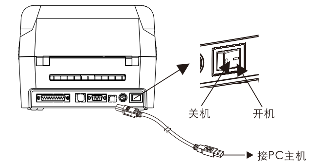 將 USB 線連接到打印機(jī),將 USB 線連接到 PC 主機(jī),將打印機(jī)電源開關(guān)打到開機(jī)(I)狀態(tài)。