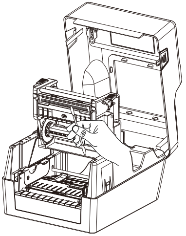 將紙卷裝入標(biāo)簽供應(yīng)軸并使用紙卷固定片將紙卷固定于供應(yīng)軸中央。(如果使用的是4"寬的紙卷,可以將固定片取下,直接用紙卷軸即可。)