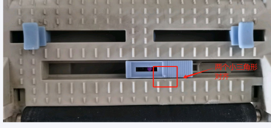 b.找到長方形光耦滑塊,確認滑塊中間的三角箭頭是否對齊或把滑塊移到最右側;