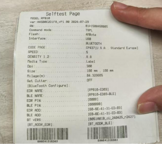 按走紙按鍵兩下(大約2s 左右),會(huì)自動(dòng)打印自檢頁(yè)