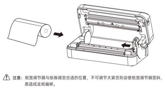 將紙卷裝回紙倉(cāng)并拉出紙張至打印機(jī)邊緣出紙口附近。 請(qǐng)根據(jù)紙張寬度調(diào)整紙寬調(diào)節(jié)器。