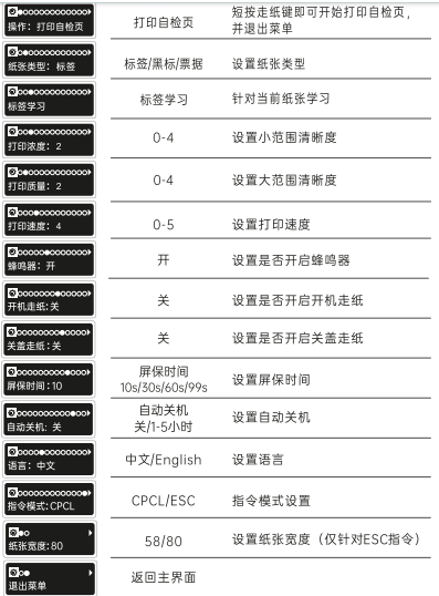 開機狀態下(非休眠狀態)長按設置/走紙鍵進入選項界面。
