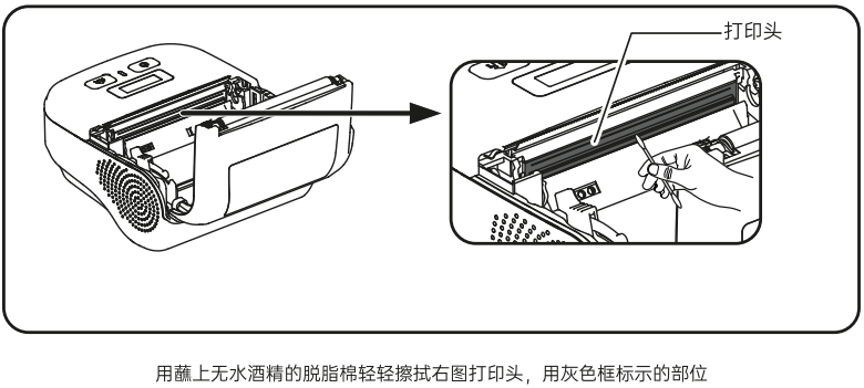 用柔軟的棉布蘸酒精擦除打印頭表面的灰塵、污點;