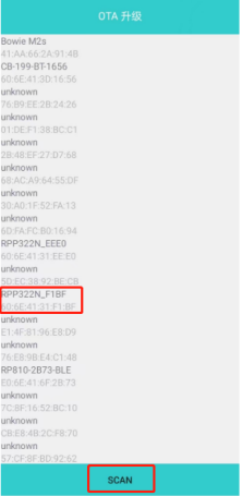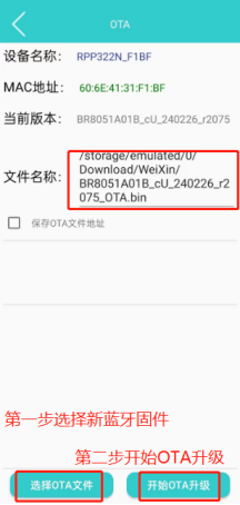 ②藍牙連接不成功,可以嘗試升級藍牙固件,安卓手機安裝下面的apk文件,安裝完成后打開OTA升級軟件,點擊SCAN按鈕搜索打印機藍牙名稱,搜索出來再點擊對應的藍牙名稱連接上,將藍牙固件保存到手機上,再通過選擇OTA文件選擇新藍牙固件,然后點擊開始OTA升級,等提示OTA升級成功即可,最后再長按設置鍵,切換到恢復出廠設置選項,短按電源鍵進行恢復出廠設置;最后再進行藍牙連接測試。