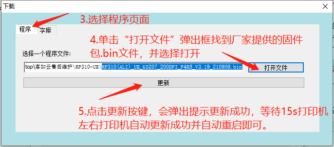 E. 點擊更新,等待打印機更新成功并自動重啟打印機即可