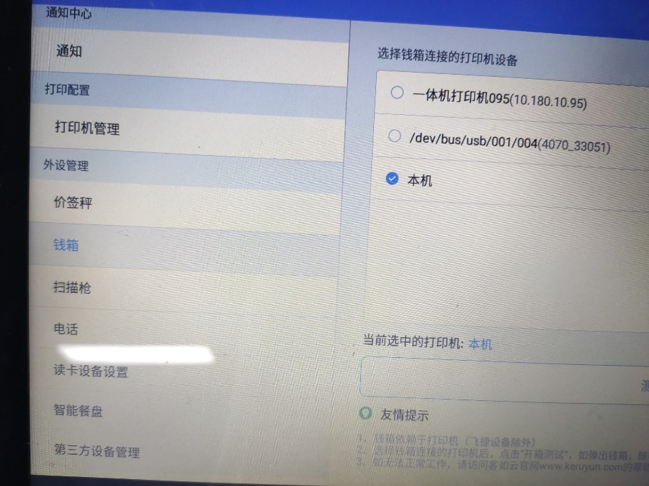 C、 把錢箱的連接接口選擇到其他地方,(不要選擇打印機的USB 口)