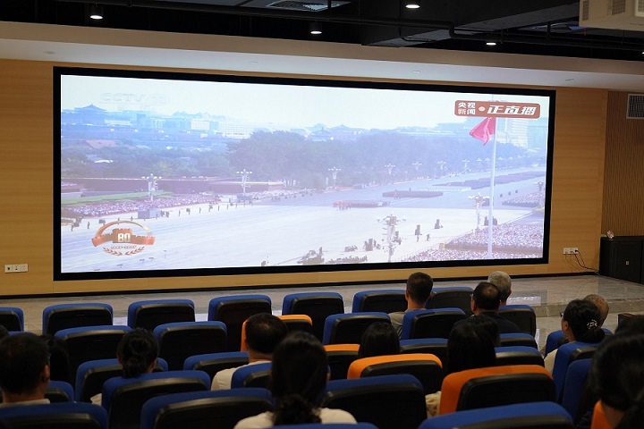 2025年9月3日,是中國人民抗日戰爭暨世界反法西斯戰爭勝利80周年紀念日。當天上午,容大科技組織員工集中觀看紀念抗戰勝利80周年閱兵盛典直播——公司電影院、大堂及辦公區區域,同事們凝神專注,共同見證這一承載民族記憶與時代力量的莊嚴時刻。